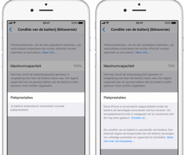 Vanaf iOS 11.3 heeft Apple in alle iPhone 6 en nieuwere modellen de optie "conditie van de batterij" toegevoegd.